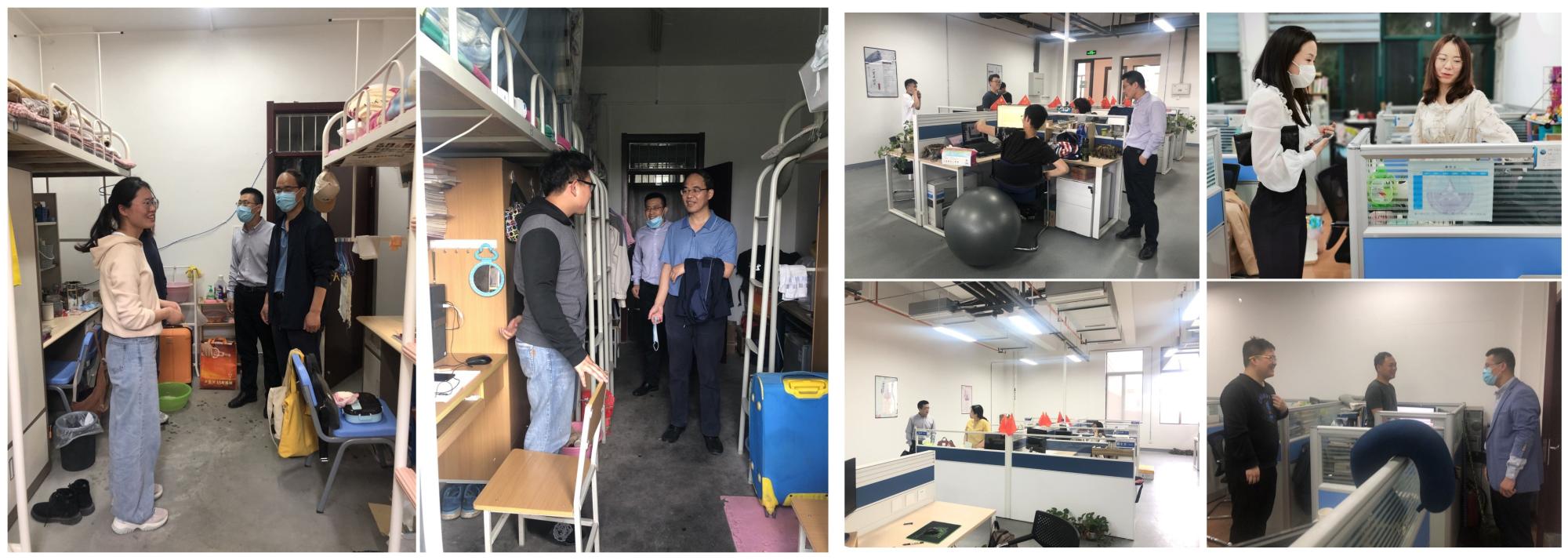 5月8日下午,学院党委书记徐自力、副书记陈永华及学院辅导员李昱静走访学生宿舍、研究生工作室,与学生亲切交谈,了解学生返校后防控及科研状况,指导学生做好返校后的学习科研生活规划,叮嘱同学们做好宿舍清洁卫生,保持高度的安全防范意识,营造良好的学习与生活环境,以更好的精神面貌投入到新学期的学习工作中。5月26日下午学院党委副书记陈永华和研究生辅导员李昱静走访创新港研究生工作室,慰问创新港2019级研究生。