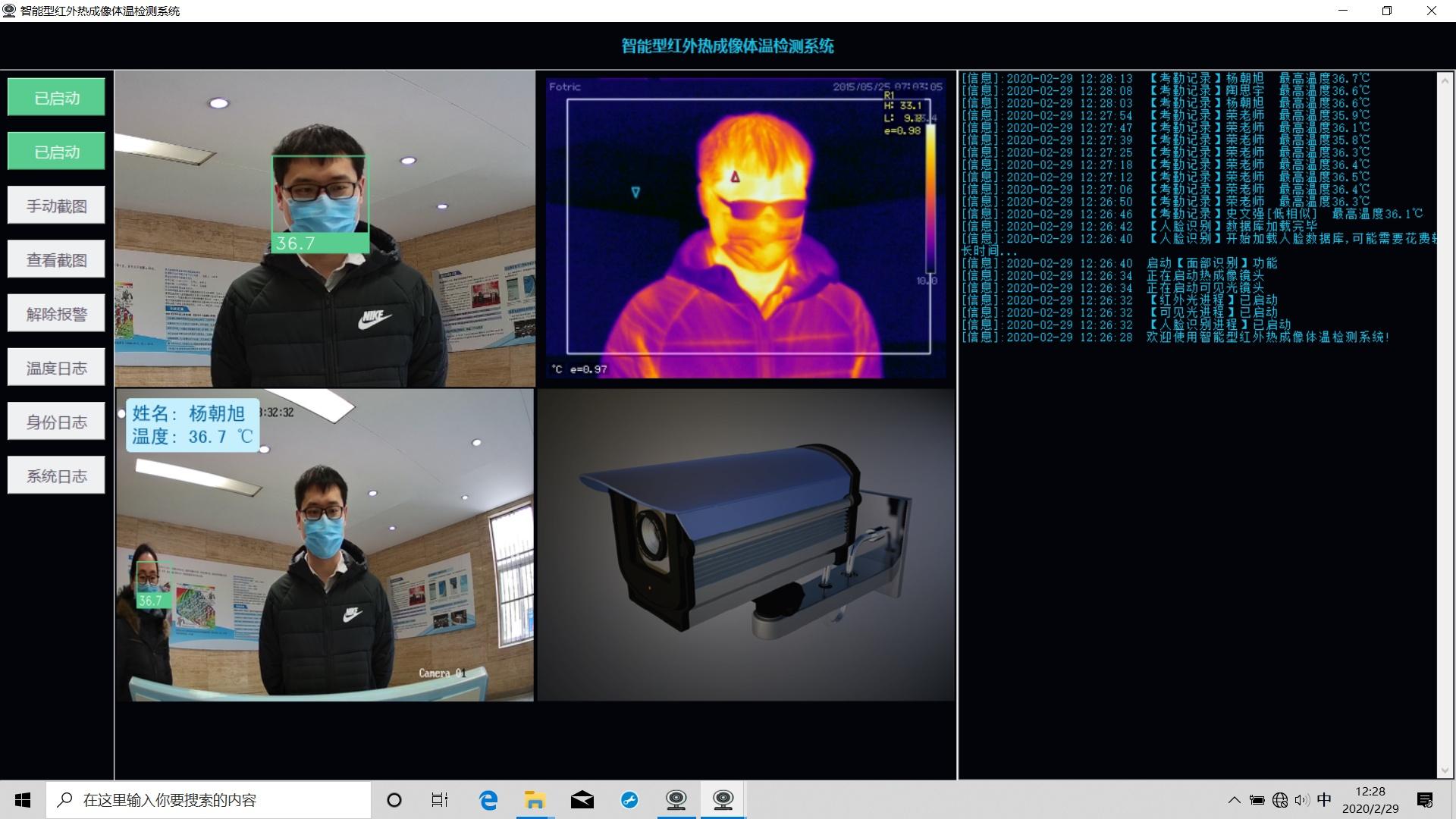 杨朝旭表示,“这套系统可以解决社群的身份识别与体温检测,在戴口罩测试场景下性能良好,具有快速体温筛查和非接触考勤管理功能”。