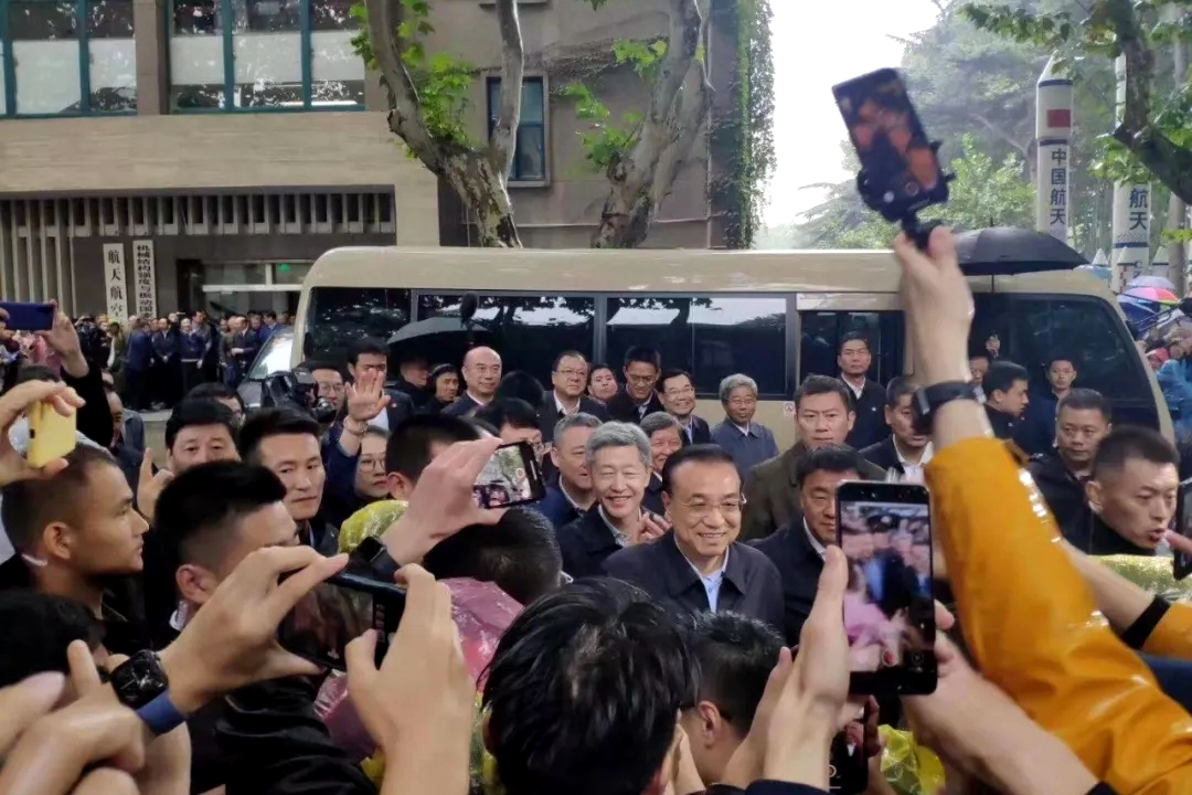 梧桐东道气氛格外热烈,道路两边围满了同学,大家争相与李克强总理握手,用手机留下珍贵的照片和视频。