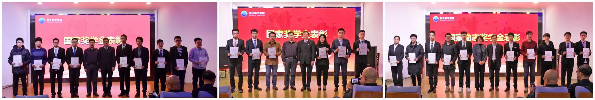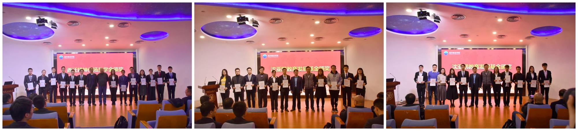 学生获得奖学金及表彰的整体情况。接着参会领导和嘉宾为“西迁精神传扬奖、中国航天罗麦科技奖学金、沈亚鹏教育发展基金、国家奖学金、国家励志奖学金的获得者颁奖并合影留念。