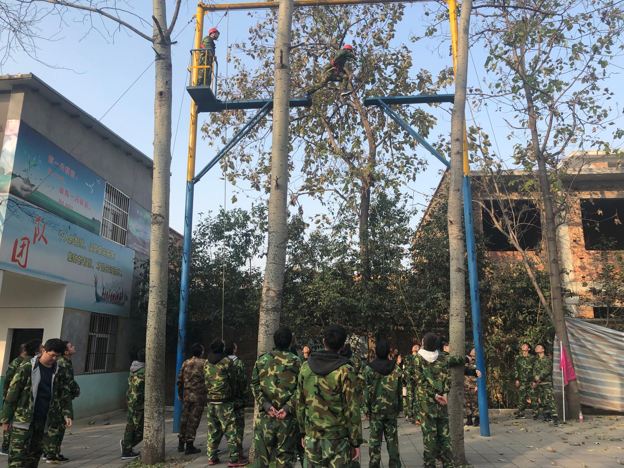 本、硕、博学生干部和学生党员在秦岭清心园拓展教育实训基地进行素质拓展训练。