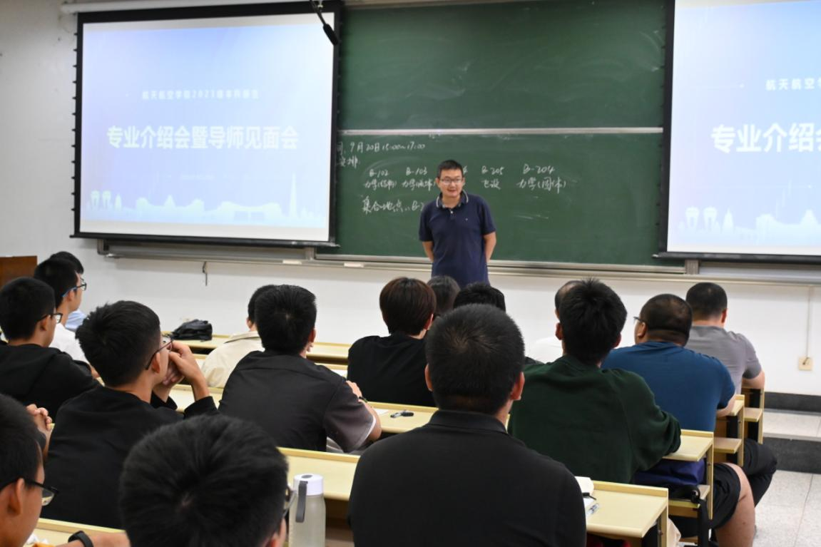 随后,学院各系主任上台解读专业。郁汶山向同学们展示了学校工程力学背后坚实的科研基础与雄厚的科研实力,介绍了力学的突出作用。雷蒋、孟雪广分别向同学们展示了飞动、飞设专业领域及研究方向,鼓励学生加入这一伟大事业,为中华民族伟大复兴中国梦不懈奋斗。