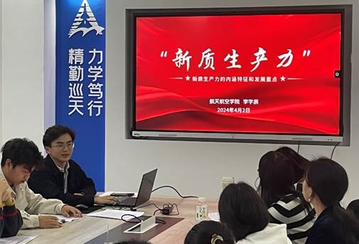 会议伊始,研究生辅导员李宇辰带领大家共同学习领会校党委组织部下达的《关于开展好2024年党支部组织生活的通知》精神,着重强调本学期党建工作的要点及核心内容,要求各支部严格落实好“三会一课”制度,贯通安排好本学期党支部工作。随后,李宇辰分享了《新质生产力的内涵特征和发展重点》专题学习,用生动的案例和语言从什么是“生产力”,新质生产力的提出、基本内涵等方面对这一概念进行解读。同时勉励大家将个人发展与时代要求相结合,以国家需求为重,敢于做前沿性、颠覆性的科学研究。