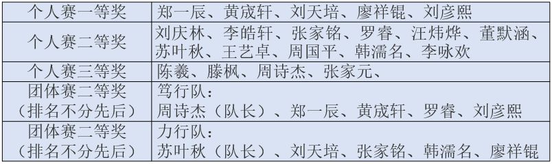 20名同学参加了个人赛,2支队伍参加了团体赛。参赛学生表现优秀,全员获奖:5人获一等奖(一等奖获奖率7%;我校一等奖获奖人数在所有参赛高校中并列第一)、11人获二等奖,4人获三等奖。两支参赛队伍均获得了二等奖。获奖学生名单如下: