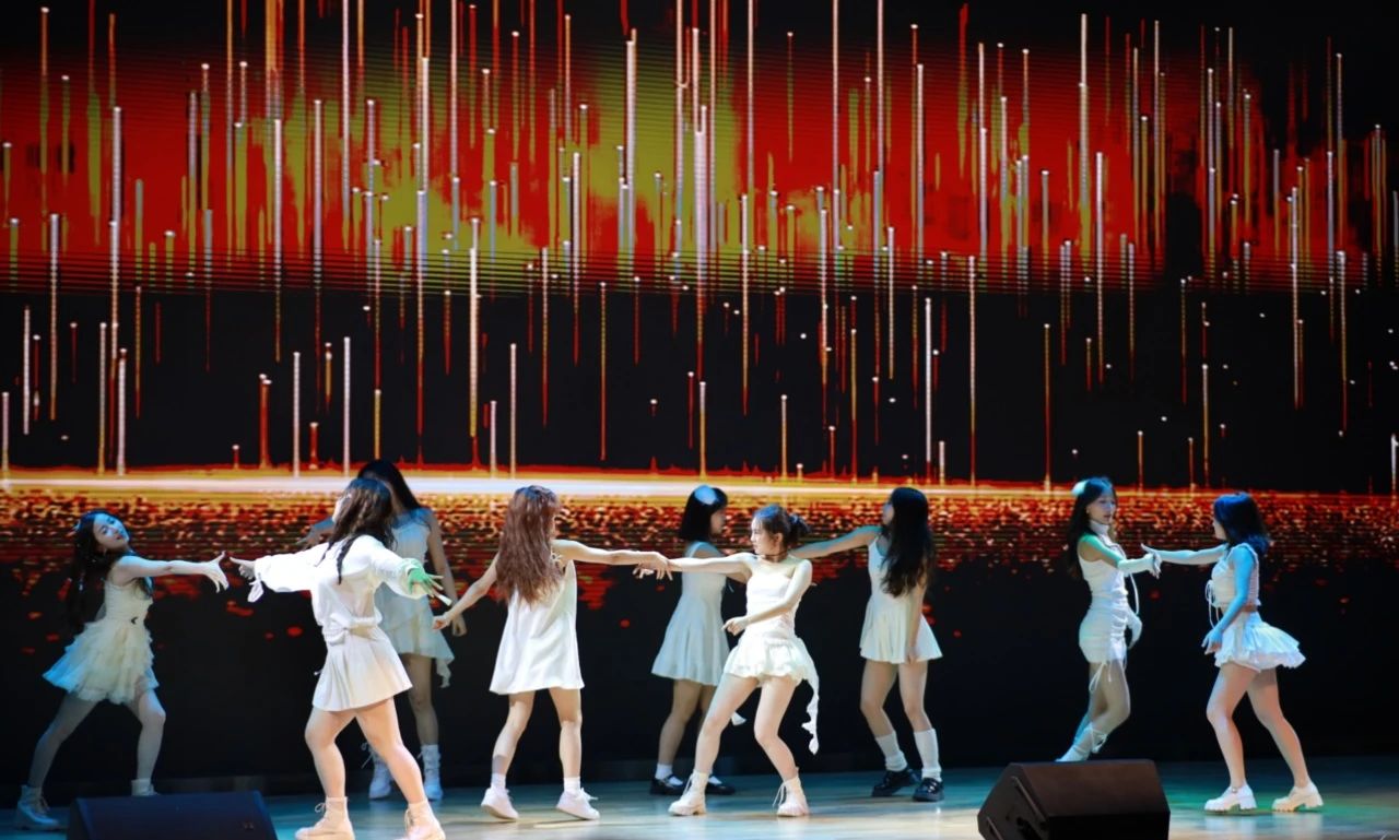 第二章 经年 第二章“经年”在女声独唱的《我的梦》中徐徐展开,在平静又执着的曲调中,庄可意唱出成长的美好——“记得成长的对话,勇敢地说我不再等待”。赵蕊鑫等四位同学表演了爵士《Shake It》,肆意涂抹青春的色彩。随后,由张一鸣弹奏、张微主唱的吉他弹唱《Innocence》则带来了青春的回忆,淡淡描绘着在千变万化的世界中,我们需要守护的初心。皮镝影等五位同学的爵士《Gods》坚韧有力,仿佛是一幅勇往直前、逆风翻盘的磅礴卷轴。而接下来,周芳菁和赵晗彤带来的是国风歌舞《浮光》,优美地演绎了浮光掠影里的历史与国色,拉上了第二章的帘幕。