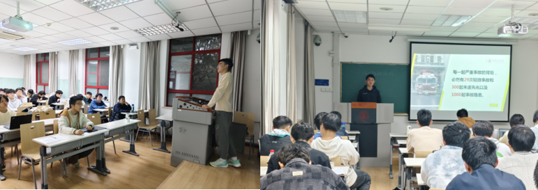 力学示范中心安全员郭苓老师为同学们进行了详细的消防安全知识讲解,包括火灾案例、消防基础知识、消防设备介绍及使用方法、常见安全隐患以及应急预案与防范。结合社团过往存在的安全隐患,深入浅出地分析了隐患的原因及防范策略,使在场的每一位同学都受益匪浅。
