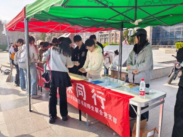 励志书院师生联合党支部的同学们与唐仲英爱心社的志愿者们一起承担活动组织、规则讲解、秩序维护等工作,以热情服务保障活动有序进行。他们用微笑迎接着每一位渴望了解环保知识的同学,他们用热情服务每一位愿意为环保助力的同学。