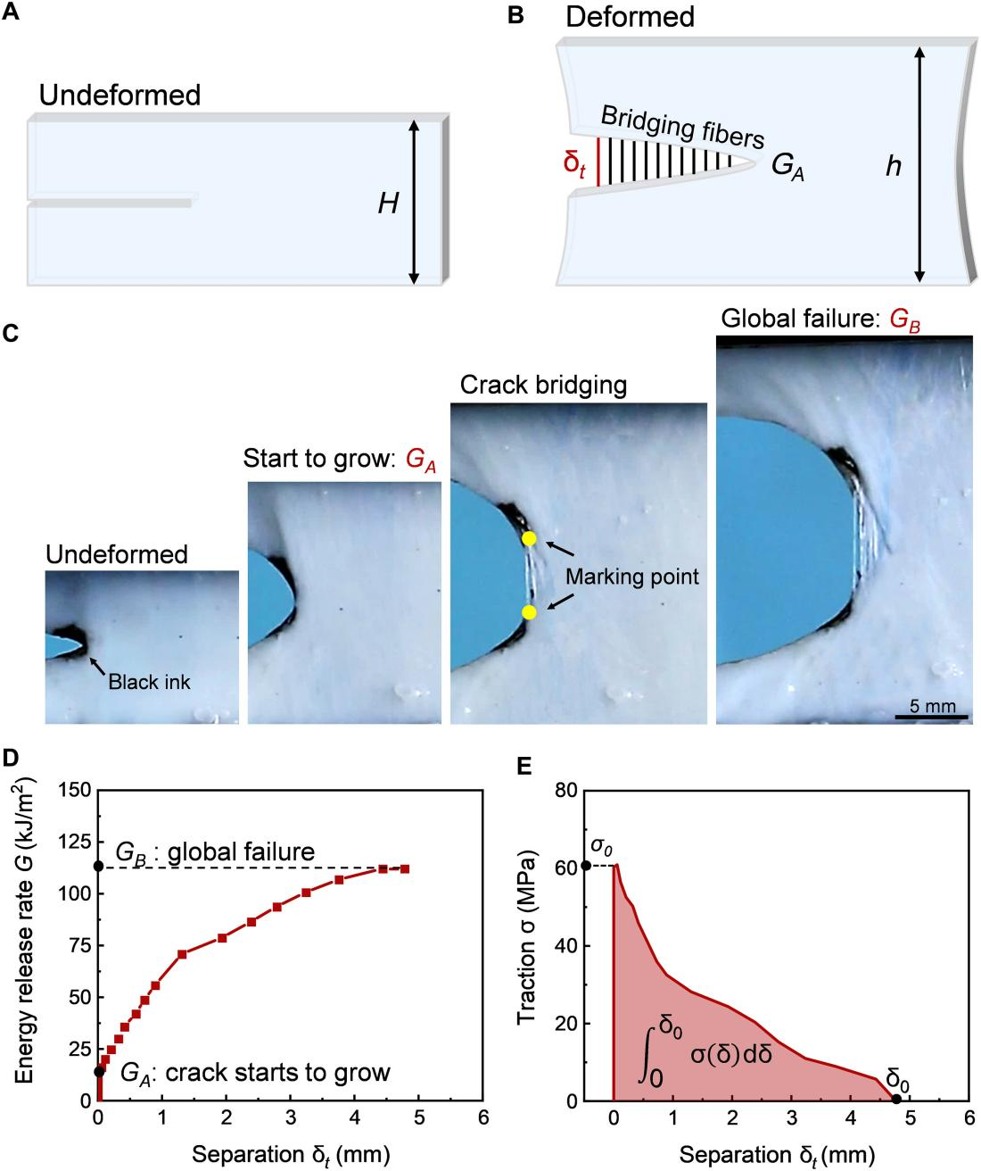 该项工作揭示了胶原软组织高断裂韧性的力学机制,量化了裂纹桥接的牵引-分离关系,为开发仿生材料(如人造心脏瓣膜)提供了理论依据。