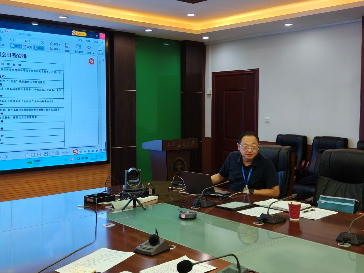 在传达学校会议精神阶段,张爱萍全面解读“西安交大2025年度暑期领导班子工作务虚会”核心要义,重点介绍并详细阐述了学校发展关键部署与核心发展举措。他强调,2025年既是“十四五”规划的收官之年,更是“十五五”规划谋篇布局的关键节点,全院上下需进一步强化责任感与使命感,要牢牢锚定学院发展目标,以更开阔的视野把握发展机遇,以更创新的思维破解发展难题,以更扎实的举措推动工作落地,全力冲刺学院“五个一流”目标,为学校建设“中国特色、世界一流大学”贡献坚实力量。