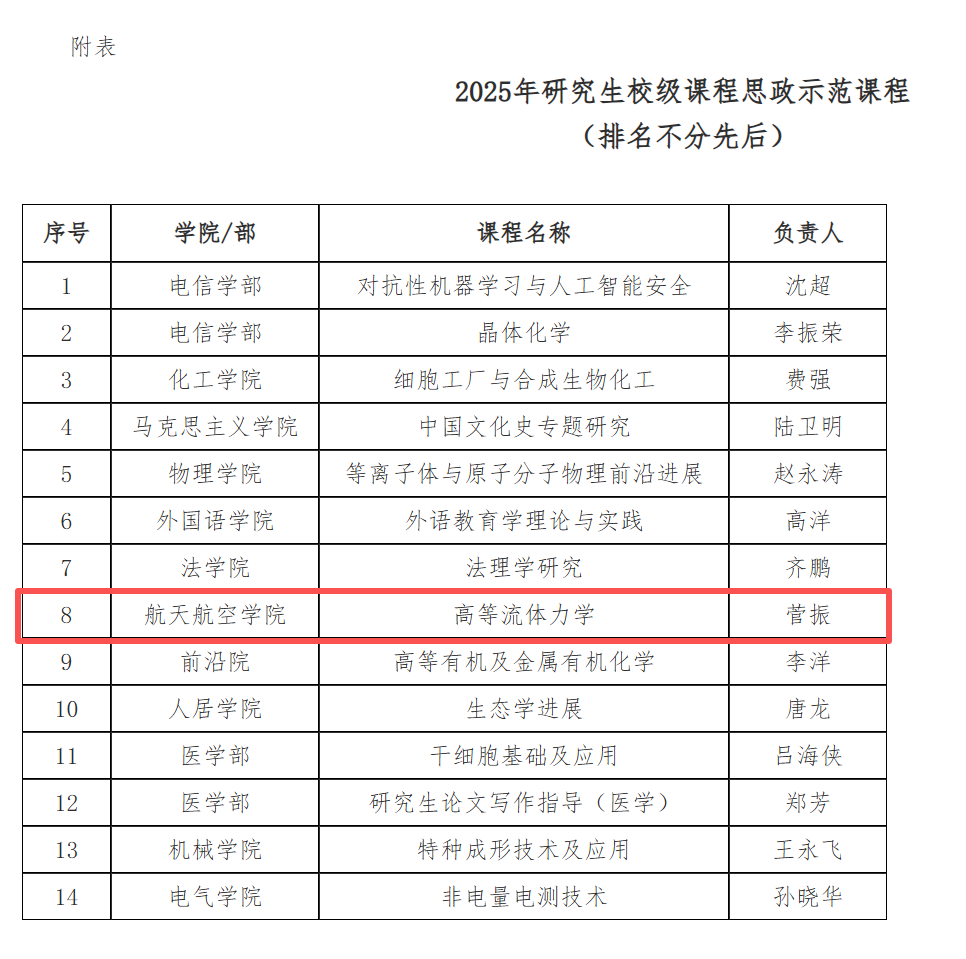近日,我校2025年研究生教学评优结果揭晓,我院菅振老师凭借《高等流体力学》课程建设的突出成果,斩获校级双项荣誉。其教学案例《"理论-科研-工程"三位一体的〈高等流体力学〉课程教学实践探索》获评"2025年校级专业学位研究生优秀教学案例",同时该课程成功入选"研究生校级课程思政示范课程",彰显了我院在研究生教育教学改革中的创新成效。