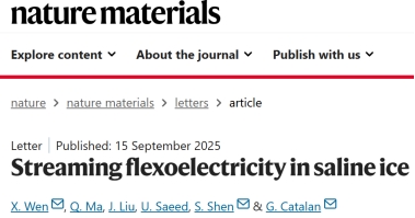 《自然—材料》:申胜平教授团队发现盐冰中的挠曲流电效应
