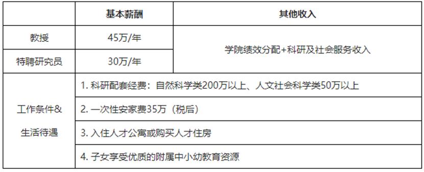 特别说明:国家“四青”获得者,或进入国家“四青”面试环节者,直接入选本计划“教授”岗位。部分学科优秀者可另获25万/年特别资助;特殊情况可面议。
