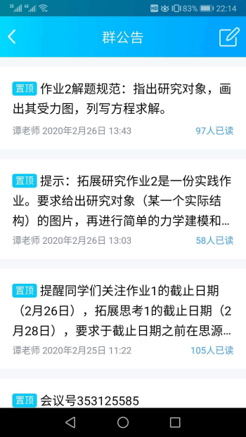 (3)由于无法确认学生是否在线收看课程直播,并为了调动学生积极性,学生交流采用小范围讨论或点名式讨论,同时在课程开始时,让每个学生有5分钟时间用来讲解自己作业部分。